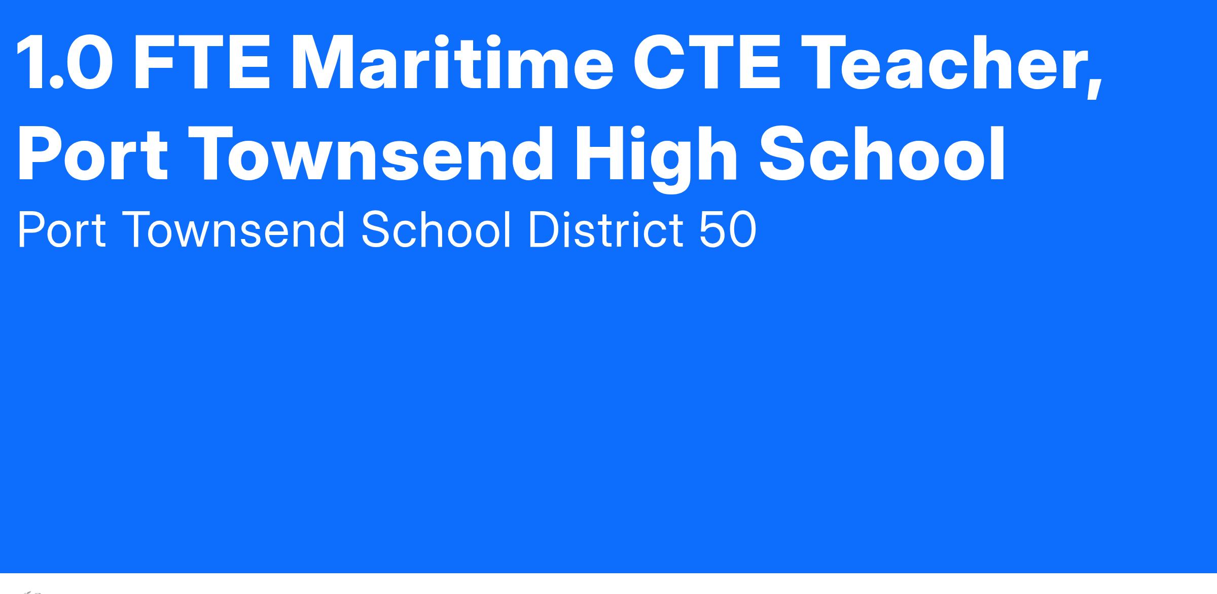 Position Opening Announcement: 1.0 Maritime Studies Instructor (CTE Certified) Port Townsend High School