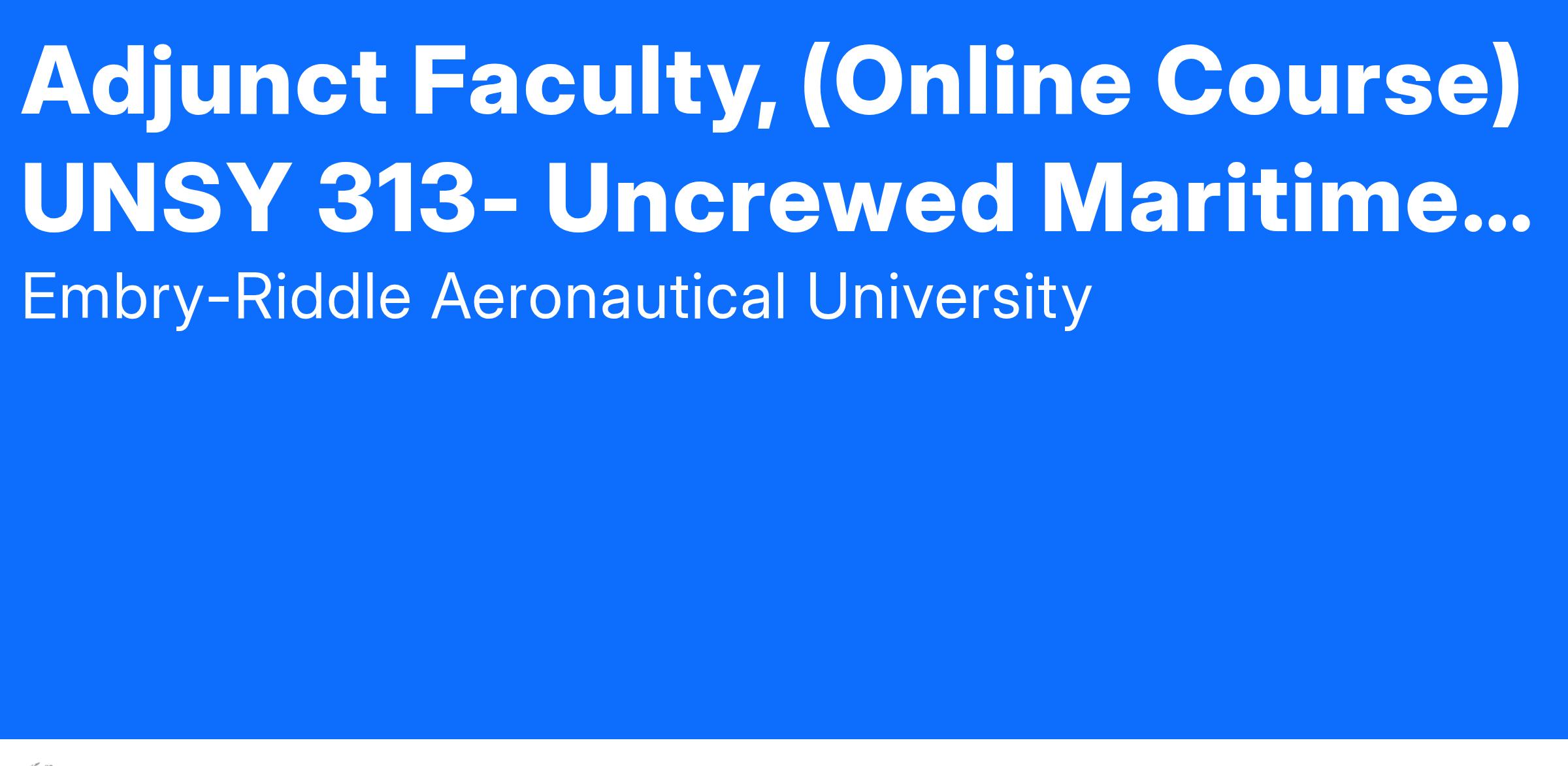 We are currently hiring adjunct faculty to teach UNSY 313- Uncrewed Maritime Systems and Applications.'