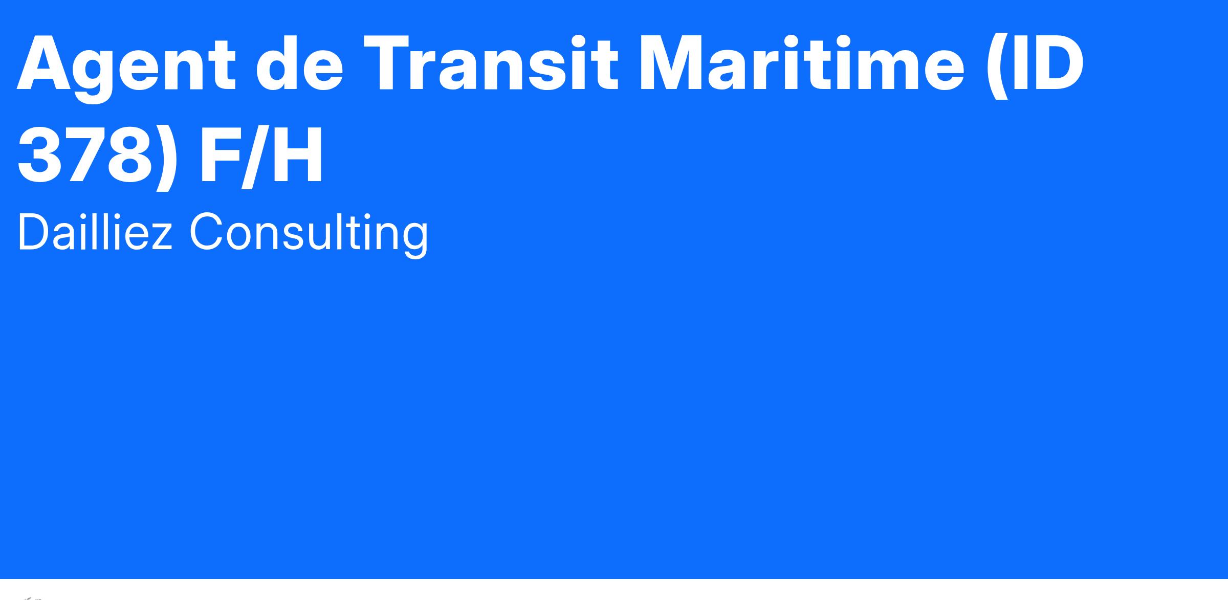 Notre Client, acteur majeur dans le domaine du transport et de la logistique, recherche un(e) Agent de Transit Maritime (H/F) pour rejoindre son équipe dynamique et enthousiaste.