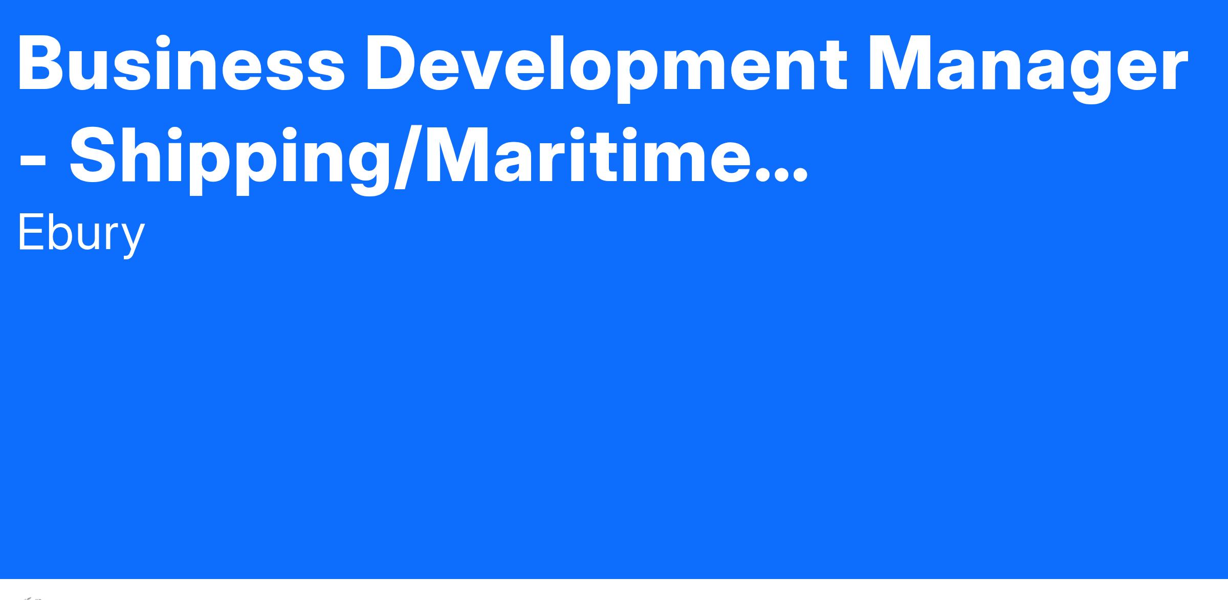 We are open to speak with candidates that have around 5 to 15 years of experience of sales experience within the Shipping/Maritime industry. This position is to sell Ebury's FX Products and other Payment Solutions to clients within the Shipping/Maritime industry.
