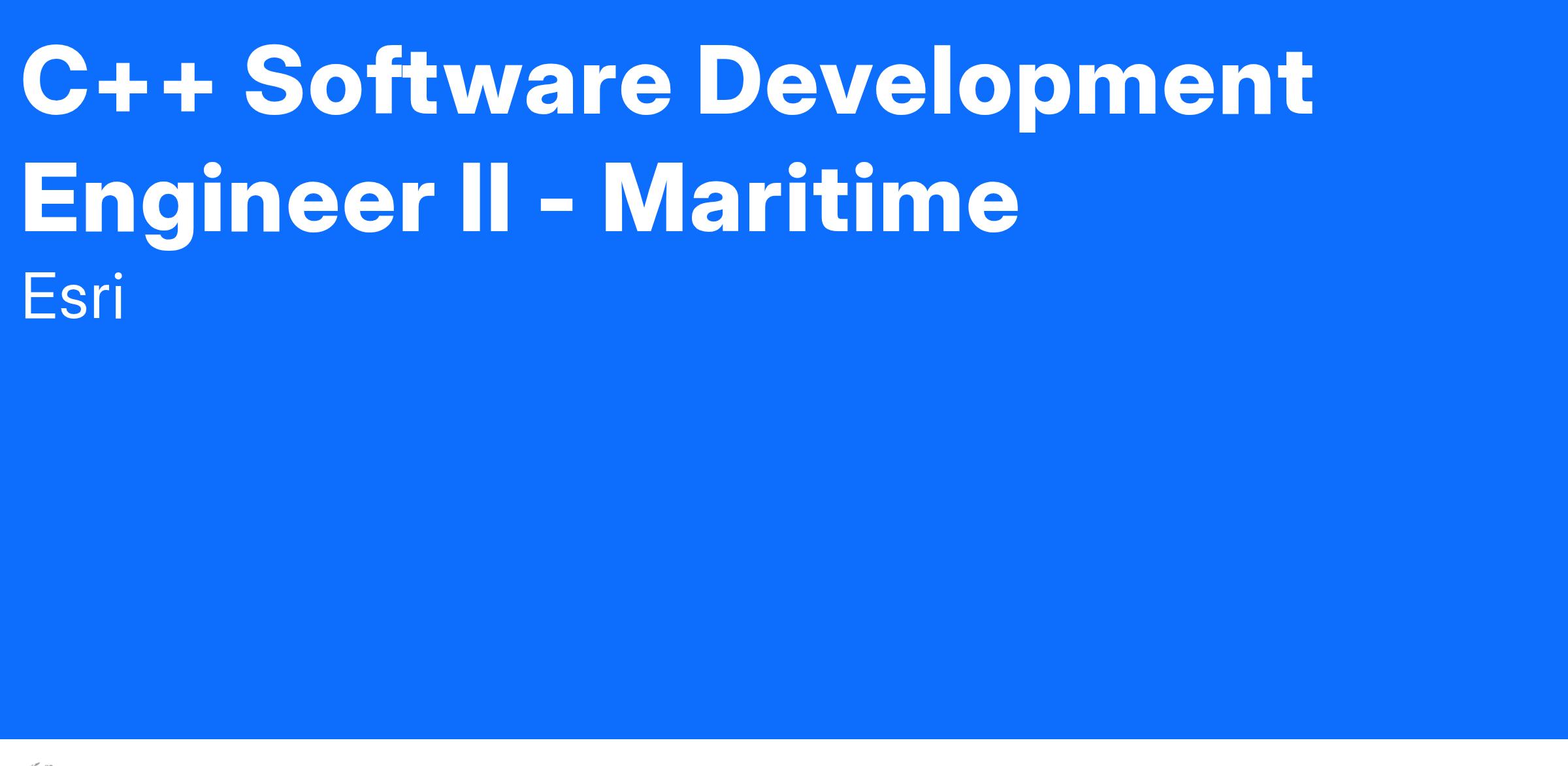 This team supports the ArcGIS Maritime and Bathymetry products. As a full stack software development engineer, you will build software that manages the knowledge of the 70% of our planet that is blue to create and curate products that are fit for purpose across the maritime domain. You will be part of a talented cross-functional team of dynamic and passionate engineers who deliver capabilities that enable our customers to make a difference in communities around the world.
