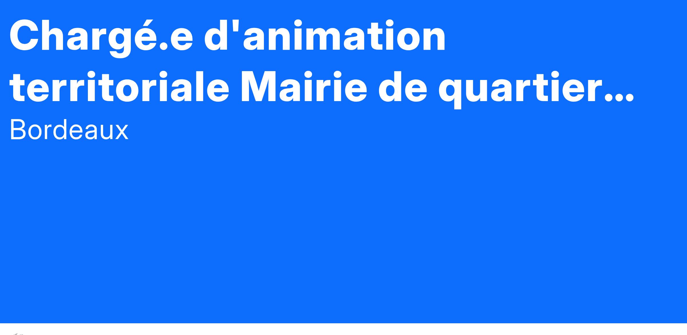 Chargé.e d'animation territoriale Mairie de quartier Bordeaux Maritime H/F
