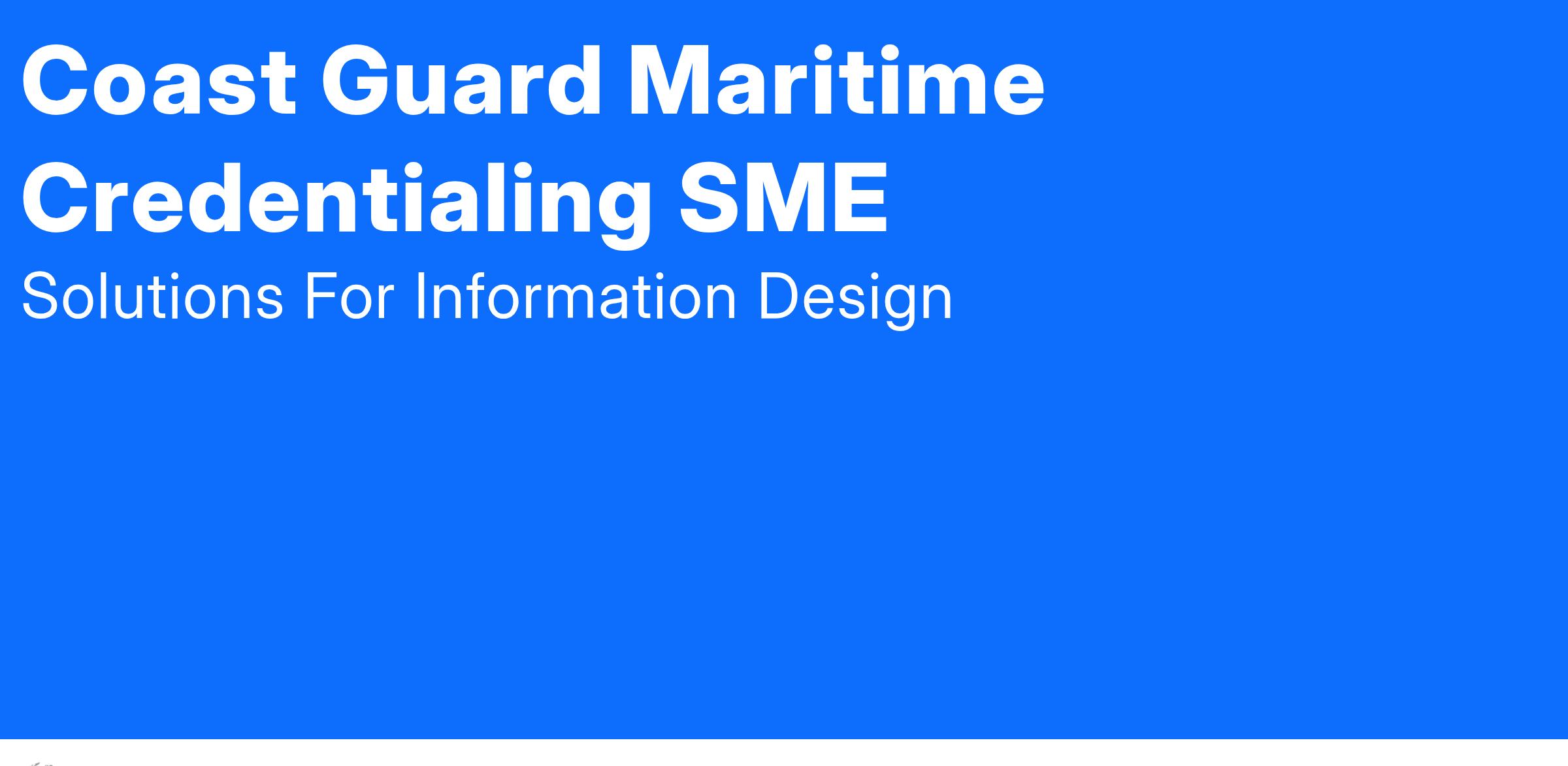 We're seeking a Coast Guard Subject Matter Expert (SME) to provide strategic insight, quality assurance, and subject matter guidance for the Coast Guard COOL (Credentialing Opportunities On-Line) program by aligning Coast Guard military occupations across personnel categories with industry-recognized credentials (certifications, licenses, apprenticeships). This role complements the efforts of our Coast Guard Service Lead by bringing high-level validation, industry perspective, and stakeholder engagement.