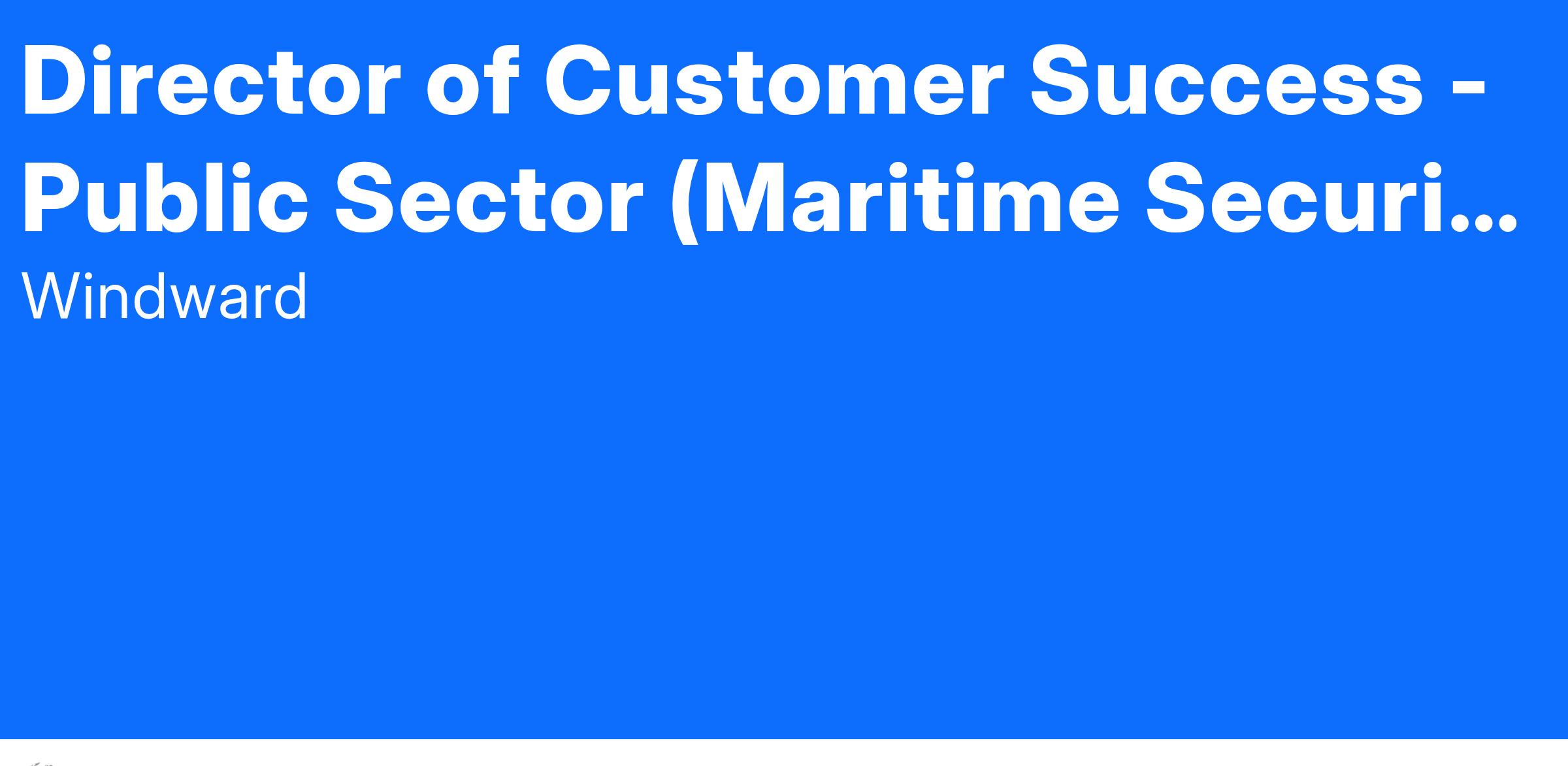 Position Overview: As Director of Customer Success for the Public Sector, you will lead customer engagement initiatives tailored for governmental and defense clients worldwide. Serving as the primary liaison for our public sector customers, your role will ensure clients fully leverage Windward鈥檚 AI capabilities to achieve their strategic security and maritime safety objectives. This position requires strategic leadership, deep familiarity in the public sector dynamics, and customer relationship excellence.