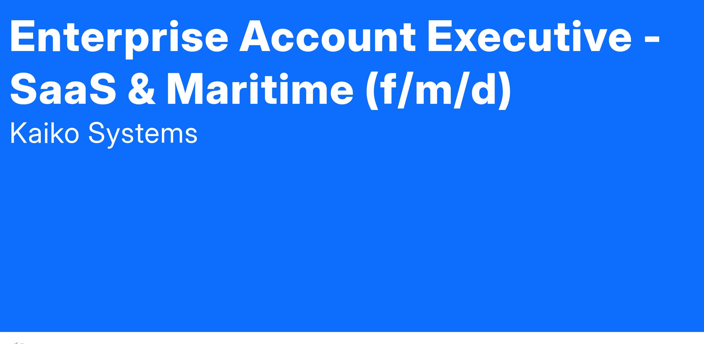 As an Enterprise Sales Manager based in Berlin, you will focus on strategic accounts in Europe, securing partnerships with major shipping companies and driving long-term growth. You’ll navigate complex sales cycles and position Kaiko Systems as the go-to partner for maritime digitization.