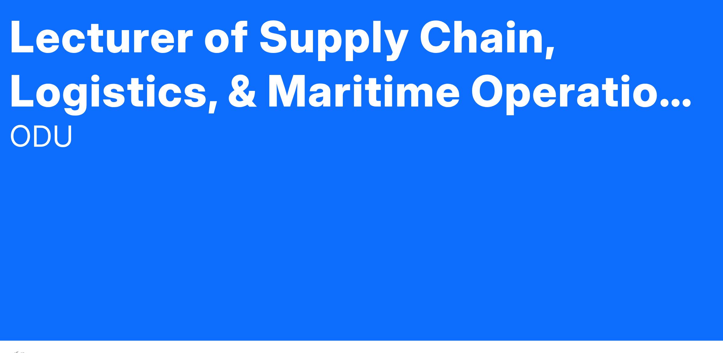 The School of Supply Chain, Logistics, & Maritime Operations at Old Dominion University invites applicants for a full-time Lecturer position beginning in Fall 2024. This is a renewable 10-month appointment. Applicants with interdisciplinary teaching and industry outreach experience are especially encouraged to apply. The School of Supply Chain, Logistics, & Maritime Operations places high value on excellence in teaching and seeks to complement the existing academic strengths in the Interdisciplinary Supply Chain, Data Science, and Cybersecurity Schools. The Lecturer is expected to be able to develop new supply chain, logistics, and maritime courses to support the growth of the School programs and meet industry needs for expert labor. The Lecturer is expected to perform committee service, student mentoring and program advising, and teach a 4/4 teaching load.