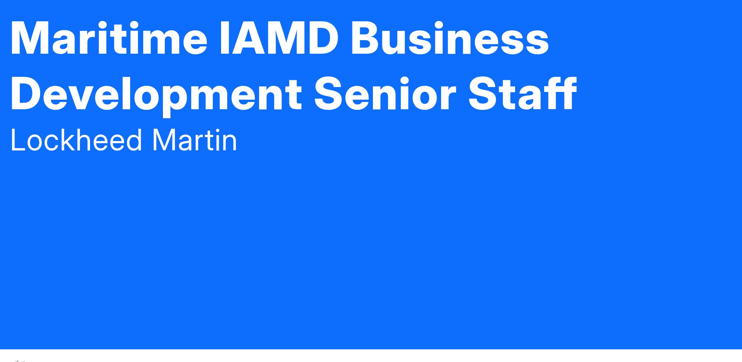 Job DescriptionBusiness development position serving as a business development analyst for the Maritime Integrated Air & Missile Defense (IAMD) market segment within the Multi-Domain Combat Systems (MDCS) market segment. This role will focus on opportunity development related to the expansion of Surface Navy Combat systems, rapid combat system capability deployment, and combat systems market expansion efforts towards new and Joint (US Army, US Marine Corps, etc.) customers.