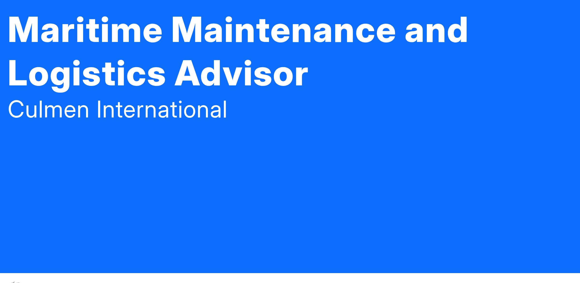 Culmen International is looking for a Maritime Maintenance and Logistics Advisor to support a Navy program. This position does require the Advisor to live in Tanzania.