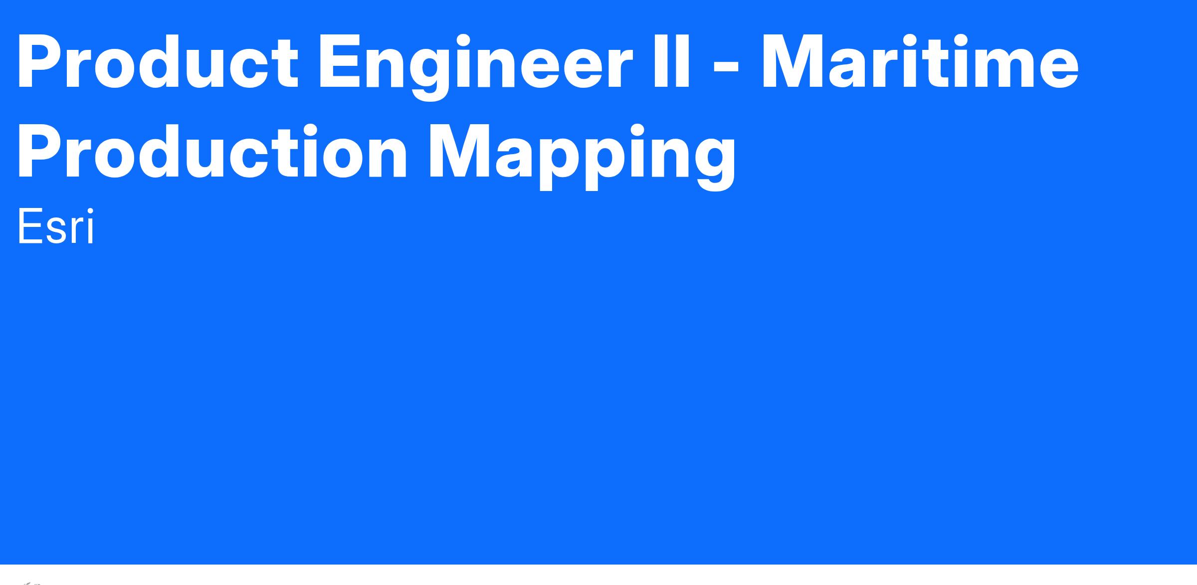 - Experience with ArcGIS Maritime, nautical charting, or similar products and areas