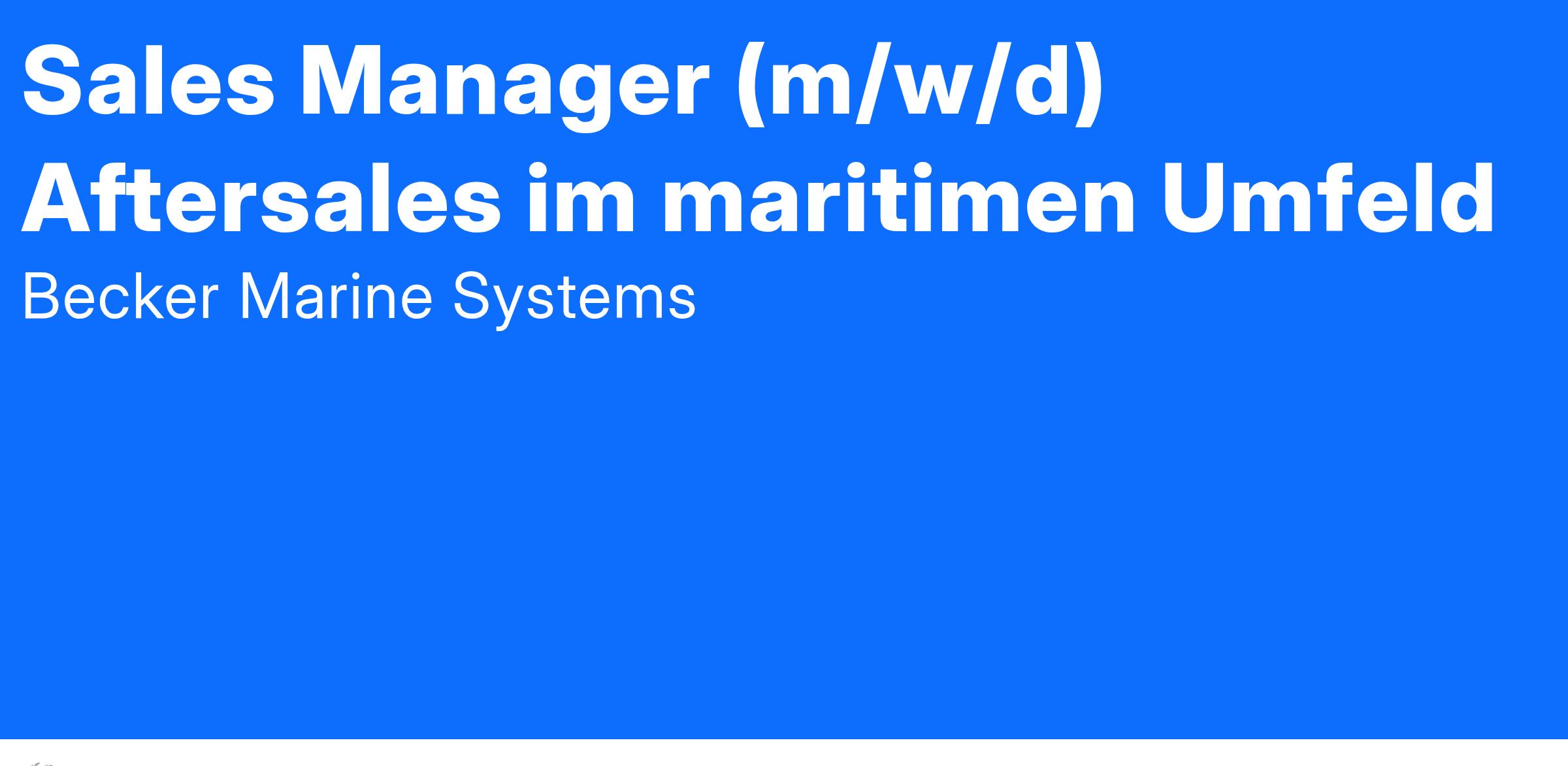 Bei Fragen zur Position wenden Sie sich gerne an Frau Janine Christen +49-40-24199-1047. Weitere Informationen finden Sie unter: www.becker-marine-systems.com