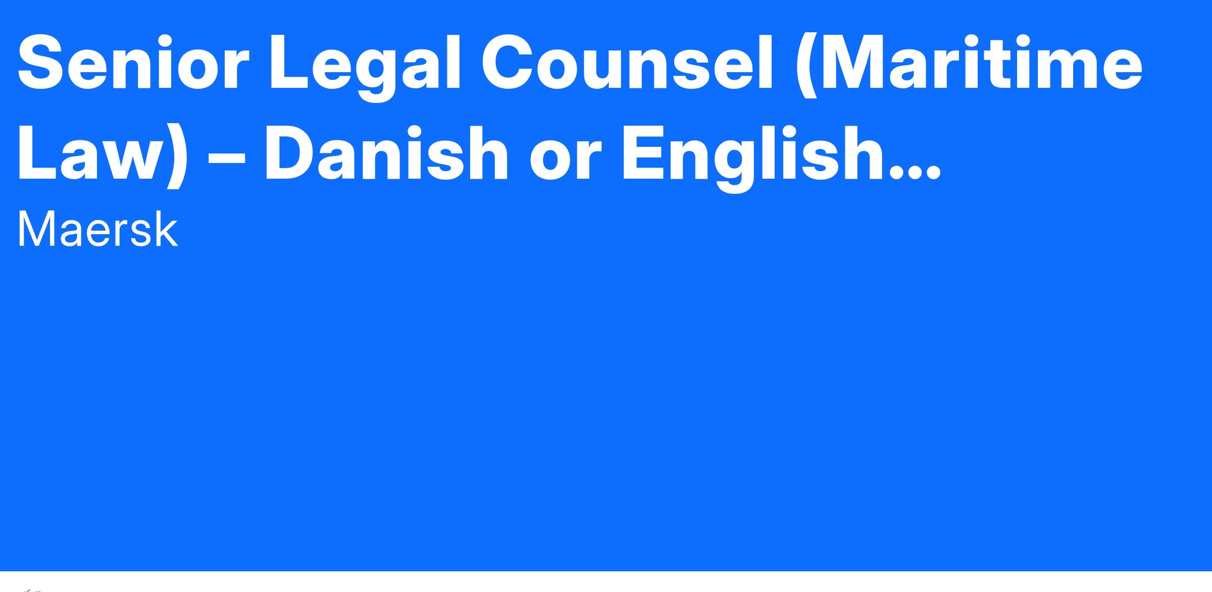 We are excited to welcome a passionate and skilled Senior Legal Counsel to our team at Maersk. If you’re ready to engage with a fascinating scope of work, tackle diverse legal challenges and work on issues that make headlines around the globe where your expertise will directly contribute to successes and where you can enjoy a better work-life balance, we encourage you to apply.