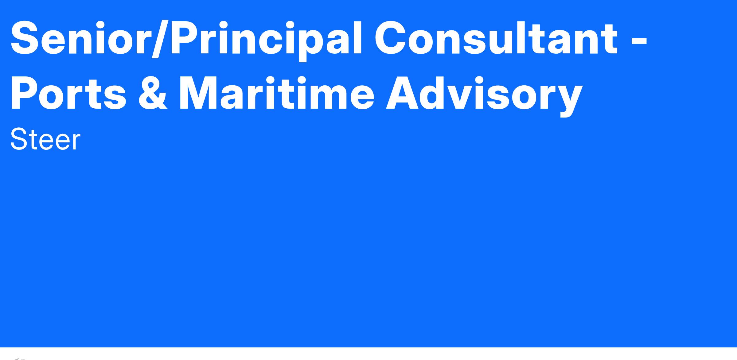 We are recruiting for a Senior/Principal Consultant to work closely with the Steer international transaction team and play a pivotal role in supporting the development of our global Ports & Maritime offer.