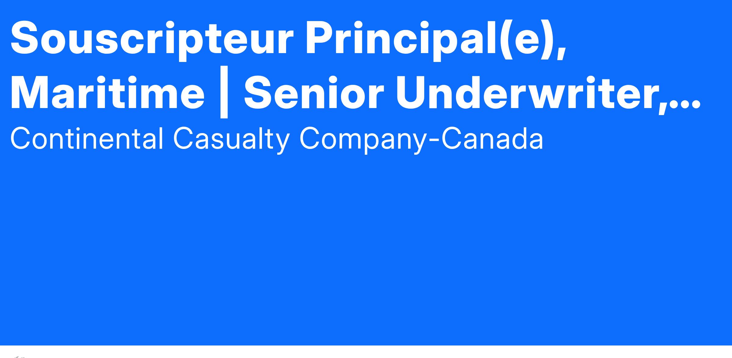 - Diplôme universitaire, combinée à titre de PAA (ou les progrès vers l'achèvement), avec 5-8 ans d’expériences en Souscription pour l’Assurance Biens et Responsabilité civile générale ou Maritime