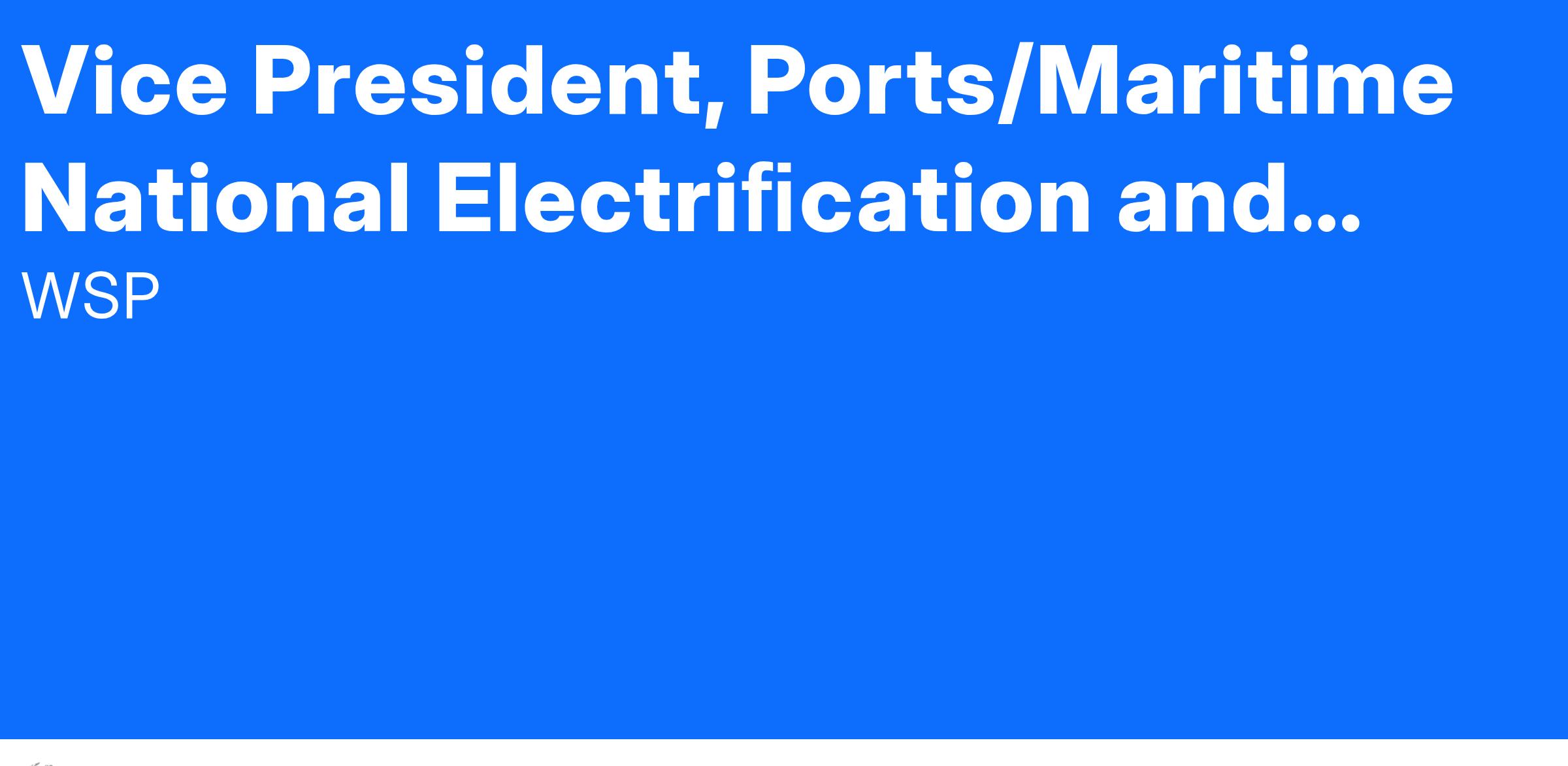 WSP is seeking a Full Time Vice President, Ports/Maritime National Electrification and Decarbonization Business Leader. This position may sit out of any of the following locations: California –Irvine, San Diego. Texas – Houston. Florida - Tampa, Jacksonville, Miami. North Carolina - Raleigh.