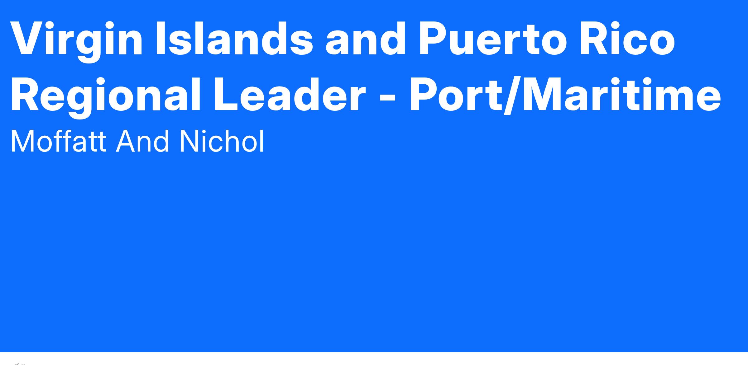 Moffatt & Nichol specializes in large complex waterfront infrastructure projects and is recognized as one of the worldwide leaders in this field. We are actively looking for a Virgin Islands and Puerto Rico (VIPR) Regional Leader. This leader will guide the strategic growth of the region by leading efforts to identify, capture and deliver projects in the ports, marine terminal, coastal, water resources/stormwater, transportation, energy, environmental, federal, state, local, and urban development markets.